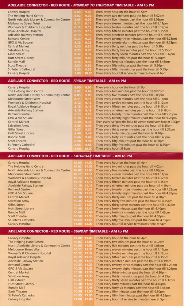 Details the Times for free Connector bus service MAP | Red Route Time Table | Green Route Time Table Top of the Page |