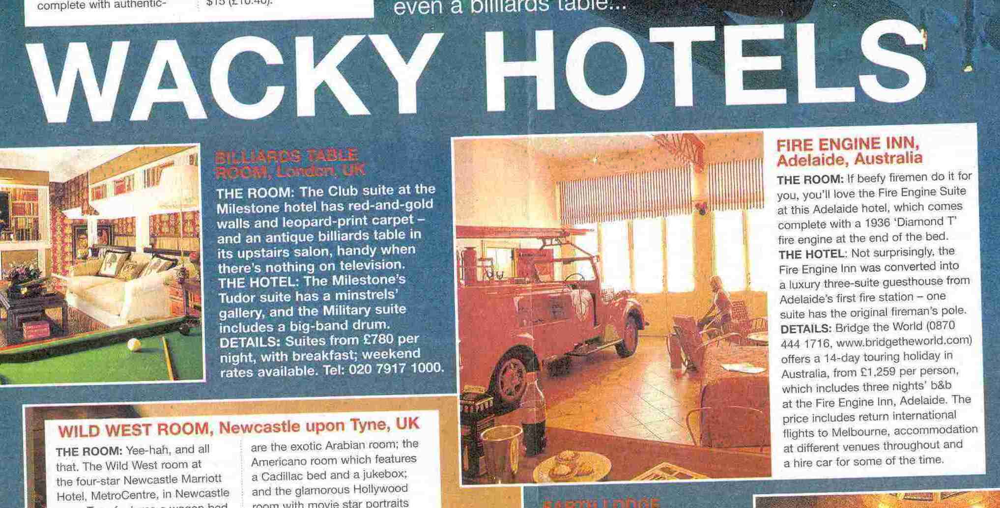 2002 'Wacky Hotels' - Fire Station article Featured in the Newspaper. |