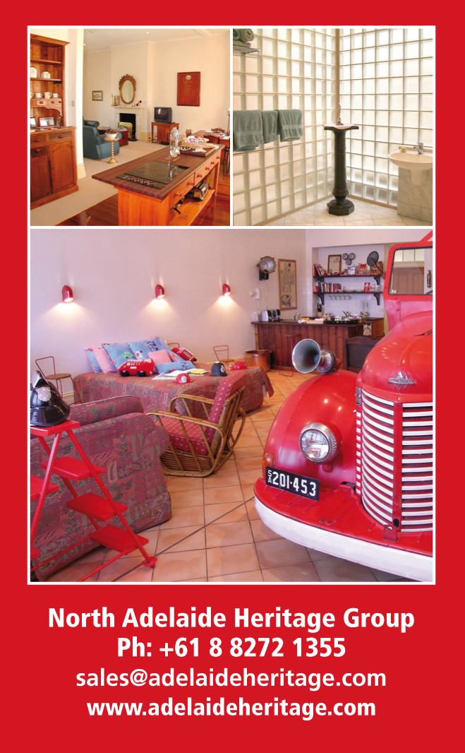 North Adelaide Heritage Group is Australia's Premier Boutique Accommodation, offering Self-Catering Apartments & Cottages and Exclusive & Unique Spa Suites! All heritage listed properties are in perfect locations close to all of Adelaide’s best restaurants, cafes, clubs, pubs and shops, with the luxury, convenience and spaciousness of your own unique, self contained and beautifully furnished accommodation. Each uniquely themed property, blending Australian Antiques with modern conveniences, provides full kitchen facilities, king sized spa bathrooms, spacious lawn and gardens, beautiful courtyards, daily servicing and free parking. We guarantee your stay with us will be highly memorable and relaxing, providing you with an authentic Adelaide experience. Fodor’s Travel Fodor’s Travel, a division of Random House, Inc. is one of the world’s leading providers of travel information. Covering over 300 destinations worldwide, Fodor’s guidebooks and website, Fodors.com, have provided the most up-to-date, accurate information for travelers for seventy-five years. Written by a team of over 700 writers located around the globe, Fodor’s provides travelers with engagingly written, intelligently and accurately reported, and absolutely indispensable travel guidance. Visit www.Fodors.com. 2010 'Fodor's Choice 2010' - What a great achievement! North Adelaide Heritage Group receives this award for the 5th consecutive year! Nov 2010 AGM NAHG Press Release - written by Rodney Twiss - Managing Director North Adelaide Heritage Group. The Age 'Good Weeked Guide' Stanley Cottage Article - Read the full article written by Amanda Hooton for The Age - Good Weekend Guide, 23 Oct 2010. Amanda stayed with us as as a secret reviewer earlier this year and it was later revealed to us she was writing about our accommodation!! Regina Twiss wins ATEC 2010 Award for Excellence - The outstanding contribution by an undividual to the Australian Tourism Export Council SA Branch was presented to Regina Twiss, director of North Adelaide Heritage Group by Matthew Hingerty, Managing Director of ATEC on 13 Oct 2010. 360 Degree Virtual Tour- Check out our fabulous virtual tours of Buxton Manor, which show in detail the historically detailed and significent interiors which you too could be enjoying by booking your next stay in Adelaide here! We are also the first B&B in South Australia to be featured on the iViewSA website with a Virtual Tour and we will be the first B&B in Australia to have the virtual iPhone Tour (coming soon). JUST ARRIVED in September!!! The NEW Room Service Menu from the Barbaro Family at Scuzzi Cafe (corner of O'Connell and Tynte Street)! New Menu features fettuccine, linguini, spaghetti, penne, risotto, parmigiana, scallopini, gourmet pizza's and all the favourites - my mouth is watering as I write! Please say hello to Robert Barbaro (owner) and a good friend of ours here at NAHG! - Room service is available for Dinner, 7 days from 5-8pm! PH 8239 2233. April/May News - Read the latest on Rodney and Regina's travels. 'Fire Station Inn featured on Getaway'- View a short video of the Fire Engine Suite filmed by Getaway. 'Hentley Farm' - Read Rodney's experince of touring the Farm with Sarah, and Cellar Door Manager, Drew. 'Surfs Up' - Read Rodney's review of new Victor Harbour Apartment. 'Return Guests, Back Again' - World travellers Mr and Mrs Sonnack have just returned back to the States after visiting Adelaide and the many Festivals in 'Mad March!' 'Sussex Cottage' - Property Update. 'Taverna on Jeffcott' - Try this new eatery in North Adelaide. 'Beautiful Accommodation Guide' - See our properties featured in the latest edition which features gorgeous hand-picked places to stay for couples, families and groups of friends. Download your 'Free E-book Here' #1. Bishops Garden and Residency Penthouse #2. Fire Engine Suite and Buxton Manor 'Fire Station A Hot Spot' - Article Featured in the Daily Telegraph January 2010. Written by Chris Pritchard. 'Read Article Here' 'The Panda's at Adelaide Zoo' - Wang Wang and Funi are the only Giant Pandas in the Southern Hemisphere and the first to live permanently in Australia and we have them right here in Adelaide! 'Dining in North Adelaide' - Features local Restaurants & Cafe's in North Adelaide we recommend. |